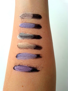 Patrząc od lewej użyłam: Satin Violet, Satin Blue, Satin Gold, Satin Green, Silk Blue oraz Satin Red.